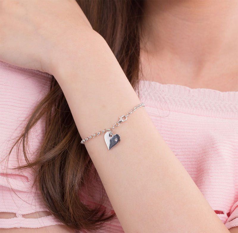 Solid 925 Sterling Silver Bracelet Dangle Heart Bridesmaid Wedding Gift Classic